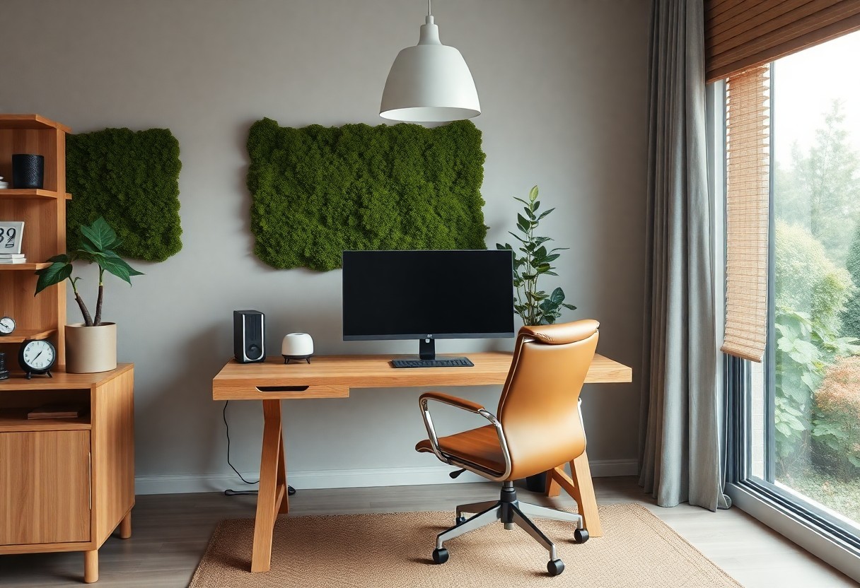 Optimales Raumklima kombiniert Temperatur, Luftfeuchte und Tageslicht, sodass du länger konzentriert bleibst; biophiles Design bringt natürliche Materialien und Grün ins Home Office, erhöht dein Wohlbefinden und reduziert Stress.